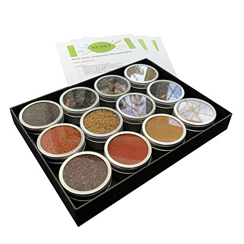 Alle blikjes hebben een inhoud van ongeveer 20 tot 25 gram. Genoeg specerijen om tientallen heerlijke gerechten mee te maken. This box includes 12 cans with KARDEMOM, RAS EL HANOUT, GEROOKTE PAPRIKA. SUMAC, ANCHO CHILI, ZWARTE KNOFLOOK, FENEGRIEK, ALEPPO PEPER / PUL BIBER, ZA’ATAR, ZWARTE LIMOEN, HIBISCUS BLOEMEN EN URFA CHILI / ISOT PEPER. Ottolenghi specerijen, gebruikt in zijn kookboeken Ottolenghi Simpel en Ottolenghi Flavour.