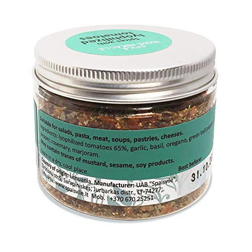 Perfect kruiden voor eventuele gerechten: Onze gedroogde tomaat kruidenmix is de beste keuze voor salades, pasta, vlees, soepen, broodjes, kaas.